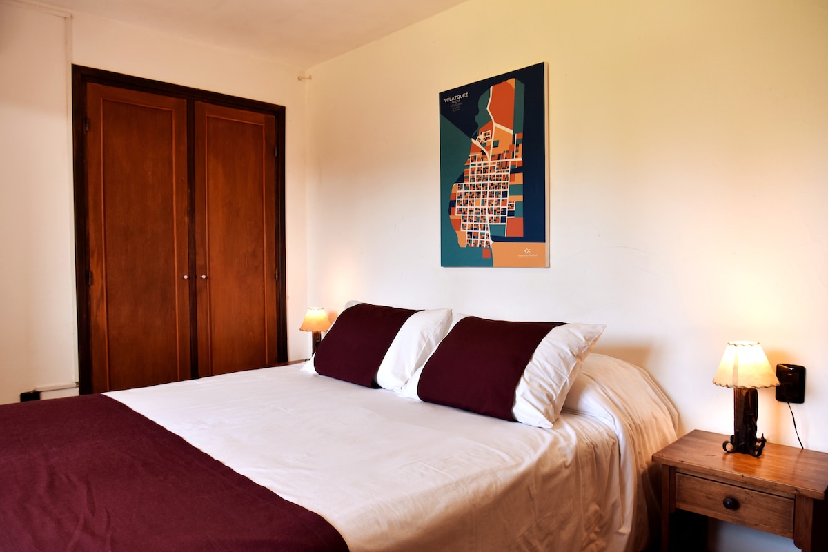 Bungalow diseñado para dos personas, con aire acondicionado, tv Smart ( netflix), frigobar, jarra electrica, wi fi, ropa de cama , baño privado y desayuno incluido. Esta dentro del complejo de la Posada de la Viuda. Areas de uso comun, como: cocina, living, comedor , area de tv y lectura, piscina climatizada (noviembre a marzo), tinia de agua caliente, parrillero, mirador y un hermoso parque con hamacas y reposeras.