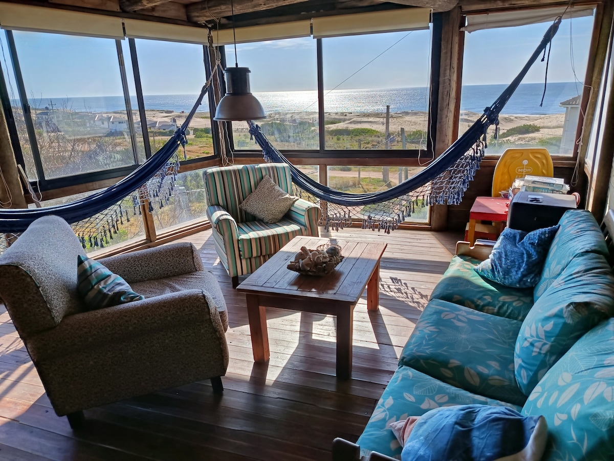 Enjoy a unique experience at Casa Grande Punta del Diablo, facing the sea of Uruguay. Ideal for families or groups of up to 4 people, it offers spectacular views of the ocean, the lighthouse and native nature. Its modern design and unique details stand out, perfect for a quiet and memorable stay. Don't miss the sunrises and sunsets, feel the sea breeze from any corner of our Casa Grande Punta del Diablo.