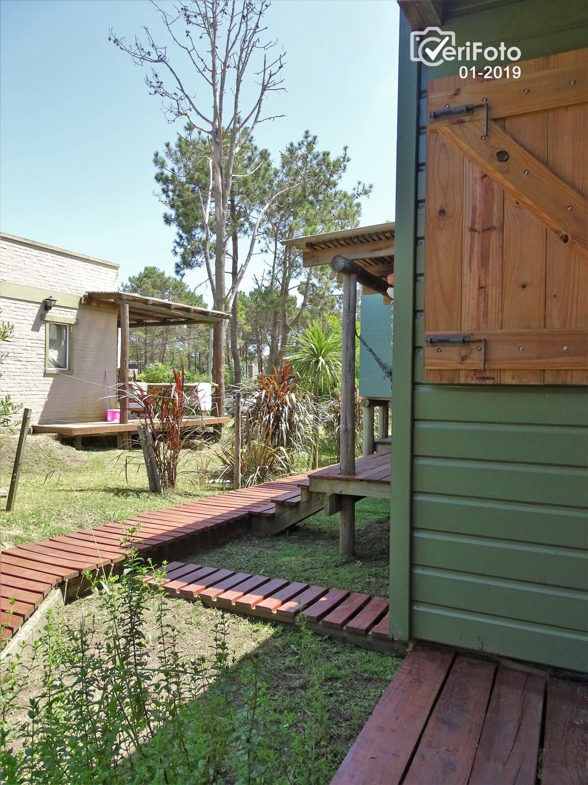 Cabaña para 4 personas, ubicada a 5 cuadras de la playa de la viuda en un lugar paradisiaco! Cuenta con dos dormitorios, aire acondicionado, wifi, directv ( prepago ), alarma, cámaras de seguridad, cocina totalmente equipada (heladera c/frezzer, microondas, cocina y horno a gas, licuadora, tostadora, vajilla completa), living con estufa a leña. En el exterior cuenta con piscina cerrada y climatizada, parrillero techado y cerrado, hamaca paraguaya, parque cerrado y pérgola con camastros detrás.