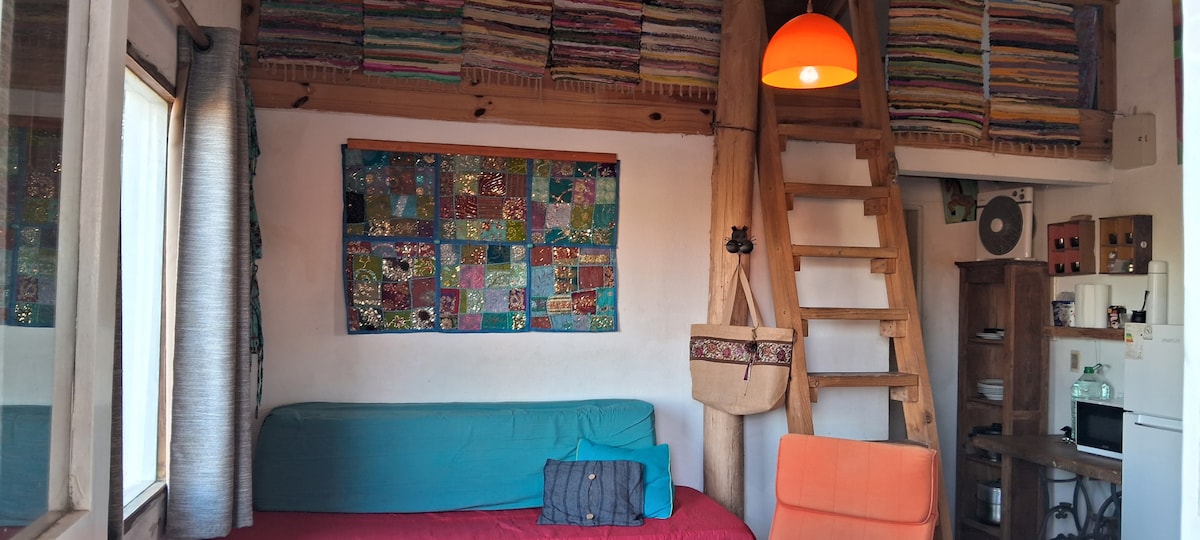 It¨s an small cabin made of wood.Very warm,brigth and romantic enviroment.Ideal for couples,travellers or backpackers.Located in LA VIUDA neighborhood.10" minutes away from the beach.20" minutes away from town(walking distance)