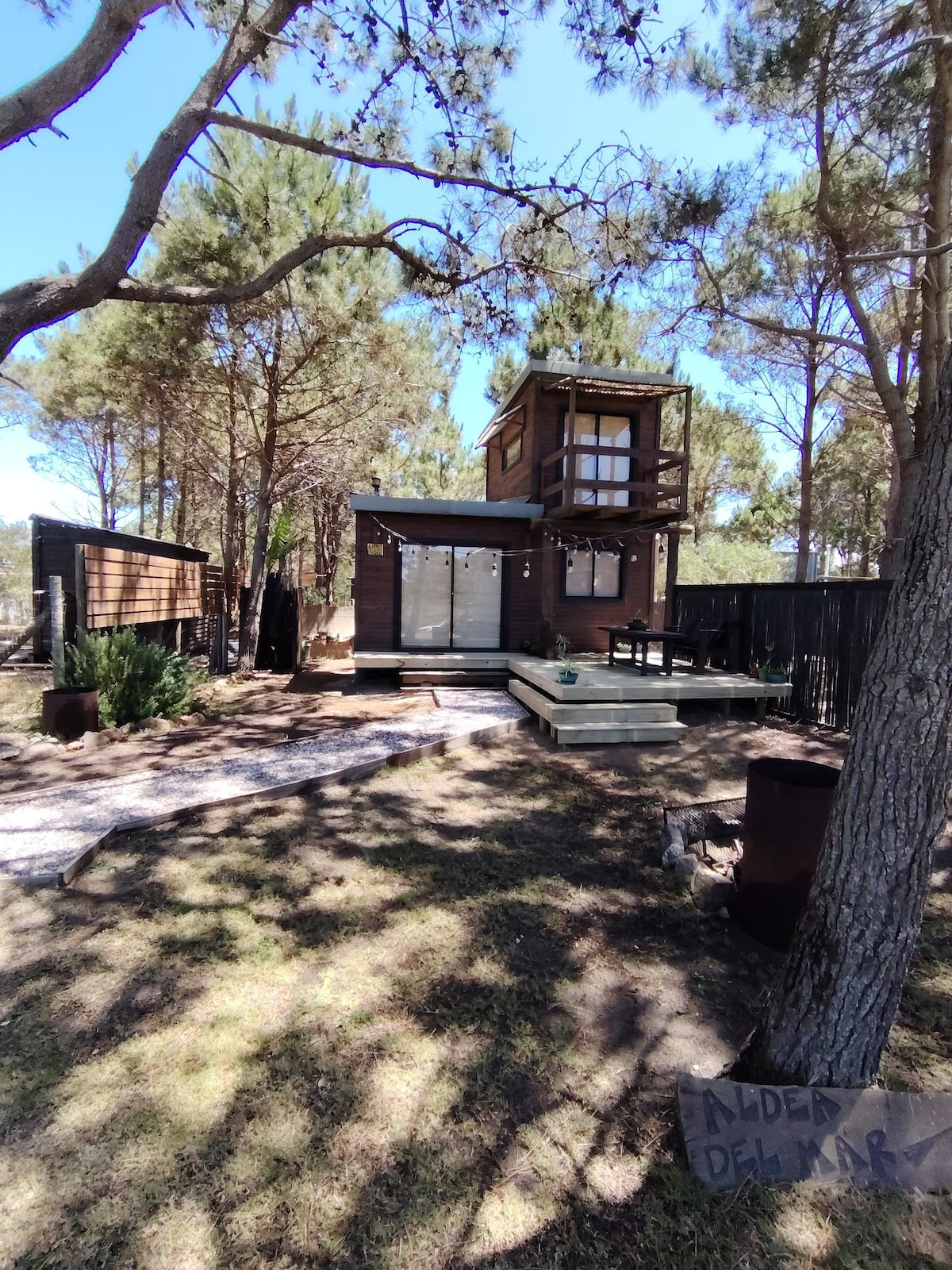 Nuestro alojamiento tiene tres cabañas rodeadas de naturaleza en una zona muy tranquila a 800 m a pie de playa La Viuda , decoradas con objetos de diseño de nuestra autoría y pensadas para el disfrute de nuestros huéspedes. Dos cabañas en madera, ideal para parejas y familia, capacidad hasta 4 personas. Un monoambiente con baño y terraza privada en contenedor marítimo, ideal para parejas. La atención es personalizada, vivimos en el mismo predio. Gracias por elegirnos! Fabiana y Miguel