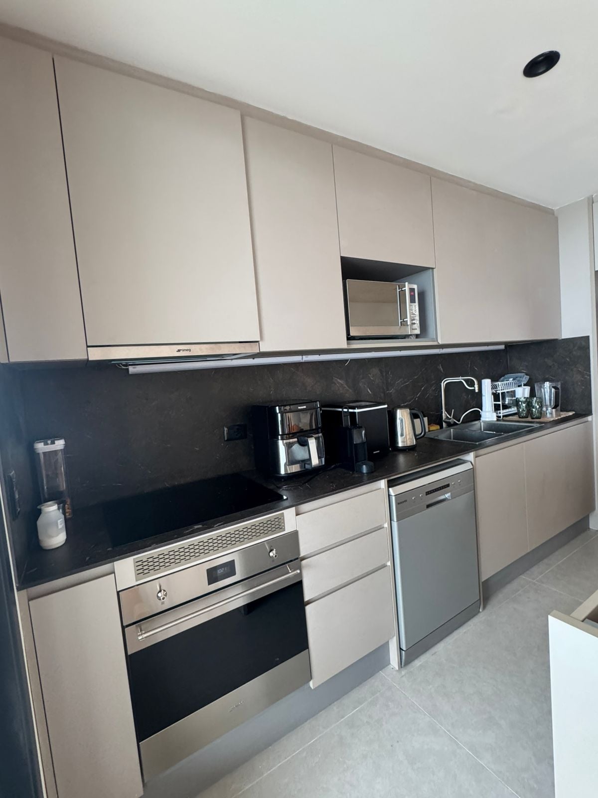 The Nordic style of this apartment allows you to enjoy the sea views in an atmosphere of complete calm and comfort. The building's amenities will make your stay perfect: security, a gym, and two swimming pools; one an infinity pool and the other heated. The building is located in a prime and strategic area, just 100 meters from bakeries, supermarkets, pharmacies, kiosks, banks, currency exchange offices, and countless restaurants, cafes, and delivery services.