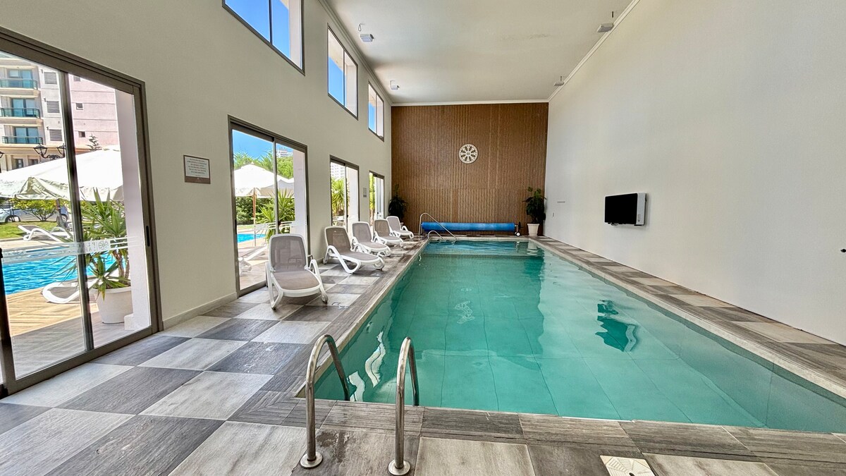 Apartamento de un dormitorio a metros de Playa Mansa y frente al Hotel Enjoy. Muy luminoso, con linda vista a la Playa mansa y todas las comodidades. Wifi , TV Cable, Servicio de mucama diario. Garage propio y lavadero. Muy lindo decorado y completamente equipado. TVs y aire acondicionado en los 2 ambientes. El edificio tiene seguridad 24 hs y cuenta con amenities de calidad: piscina exterior climatizada, gimnasio, sauna, barbacoa con amplia terraza con vistas a la Bahia. Próximo a Gorlero
