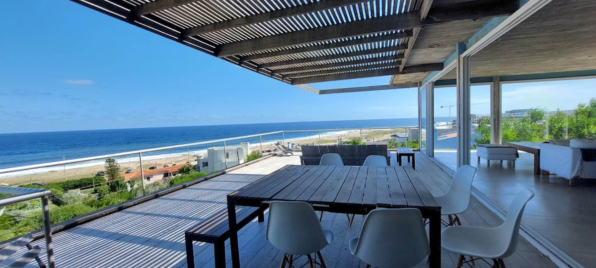 Casa "Patagonia", nos trae a nuestros orígenes. Pensada en altura para disfrutar el entorno de bosques de pinos y vistas únicas al mar. Nos gusta decir que es como la casa del árbol. Cuenta con todos sus espacios sociales en altura con una gran terraza conectada por una pasarela a la piscina. A 150 metros de la playa naturista Chihuahua y a minutos de playas increíbles como las de Tio Tom, Solanas, Pta. Ballena. A solo 5 minutos del Aeropuerto y a 15 km de Punta del Este.