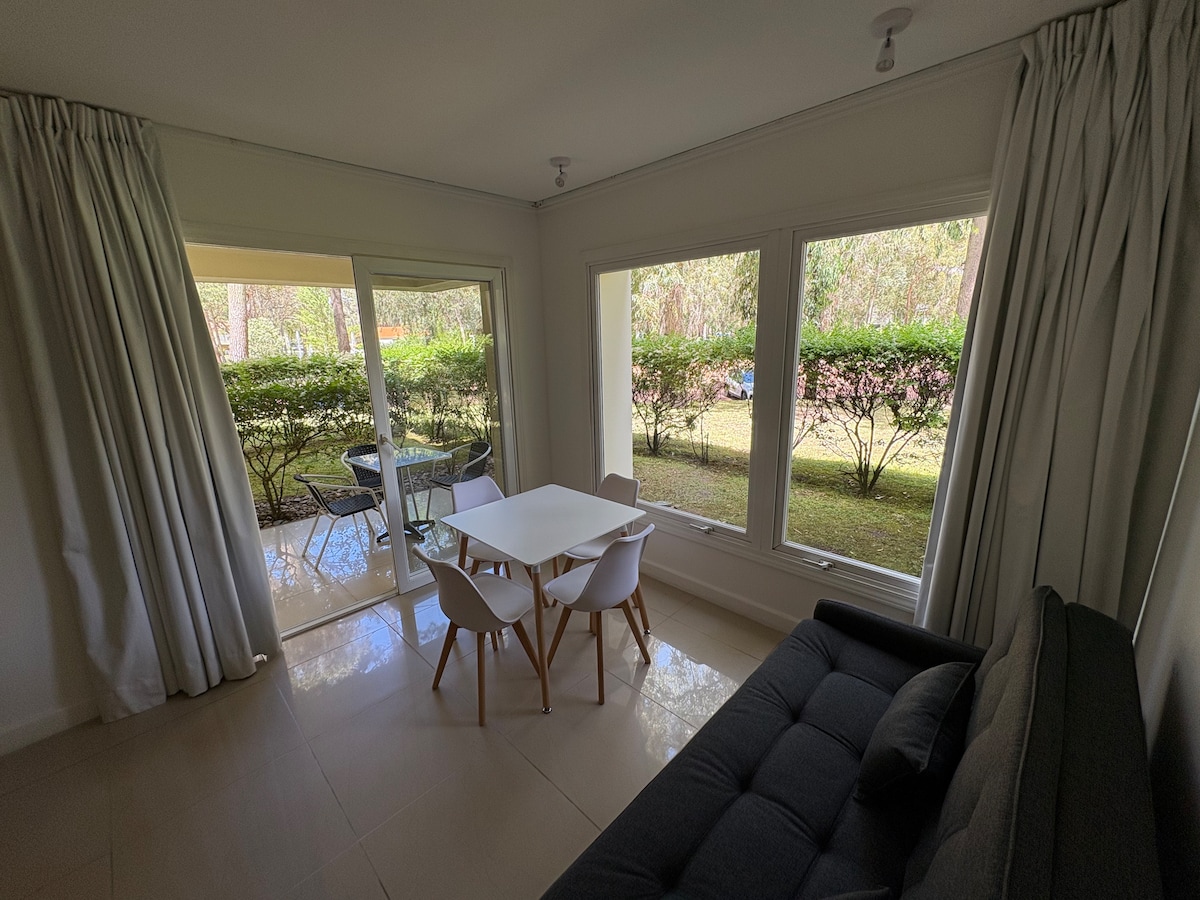 This beautiful brand-new apartment, with a balcony and lake view, is located right in front of a “House” with a heated pool and saunas, surrounded by 140 hectares of forest in Solanas, Punta del Este. Enjoy the most complete infrastructure of services and activities for both adults and children: sports, entertainment, and relaxation. A unique place where comfort blends with nature. Perfect for resting and having fun with the family. Your next vacation at Green Park Solanas 🌿