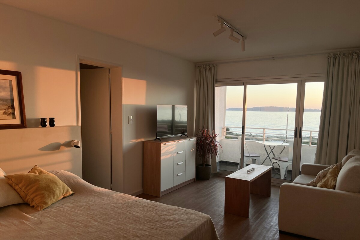 Comfortable and functional studio apartment, recently renovated, located right on the first line of Playa Mansa, Parada 17. It offers direct ocean views, a balcony, great natural light and a quiet environment, ideal for relaxing and enjoying Punta del Este. Designed for guests looking for a well-located, calm and well-maintained stay by the beach.