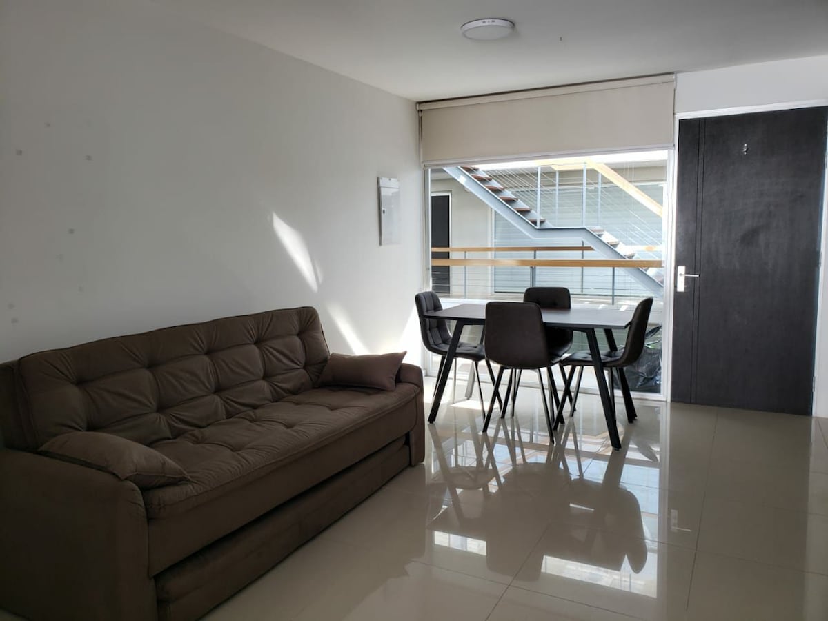 Apartamento muy lindo y cómodo (mira las evaluaciones). En la mejor ubicación de Punta del Este, ubicado en zona céntrica (gorlero). Muy cerca de todos los puntos de interés, 1 cuadra de playa brava y 3 de playa mansa. También muy cerca de la terminal. Habitación con cama matrimonial (se deja tendida con sábanas) y living con sofá cama de 1 plaza (se dejan sábanas en el ropero). Con piscina habilitada en veran. Parking cerrado (no es muy grande el espacio). Servicio de mucama.
