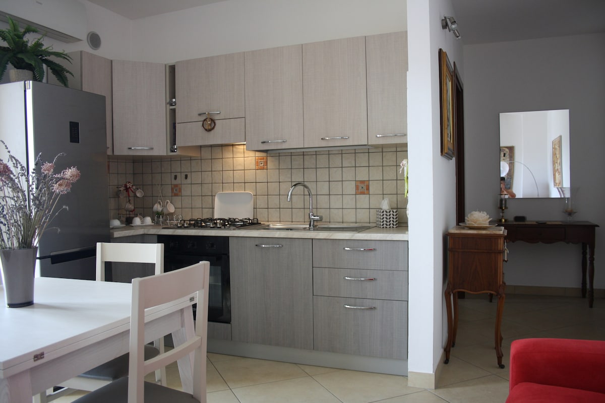 You'll feel in heaven on the sofas of the terrace in the historic center. Blue everywhere: the sky and the sea blend together. The silence broken only by the seagulls' voices. Sunset aperitifs and nights full of stars will be unforgettable. The ideal home for those who are searching for quiet and peace: cozy, clean and familiar, with stylish and exclusive design. From the typical courtyard of the historic center, two flights of stairs will take you to the attic. Recently renovated and furnished with care for the smallest details, it' s ready to welcome you for a dream holiday. It has a lounge, well-equipped kitchen with dishwasher, 1 bedroom with fireplace, 1 bedroom with TV and desk, 1 bathroom and 2 gorgeous terraces for exclusive use. PLUS 1: EXTREMELY RARE TERRACE AT THE SAME LEVEL OF THE APARTMENT: equipped with outdoor kitchen, dining table in the shade of bamboo pergola and large outdoor shower made of Salento’ s typical tiles. So you can, through the large window of the living room, cook, have lunch, relax or have a refreshing shower directly on the terrace. PLUS 2: EXCLUSIVE UPPER TERRACE: a staircase of a few steps will lead you to the large terrace overlooking the sea of the beach of Purità: equipped with built-in sofas, spacious bamboo pergola to shelter from the sun, colored deckchairs and a large table to have dinner under the stars • The house and the terraces are your complete and exclusive arrangement! • The apartment is suitable for adults friends and families with children. • We have powerful AC WI-FI, free for our guests. • Dishwasher and washing machine are available A trusted person will give you the keys on your arrival. For any need you can contact us by phone or mail or whats App. insta gram @mactoia This peaceful home sits in the historic seaside town of Gallipoli. Walk to supermarkets, pastry shops, great restaurants, trendy clubs, and the marina and beautiful beach. CHILDREN: In the presence of children, the large upper terrace requires the presence and supervision of an adult. STAIR: To reach the apartment there are two flights of stairs to do. Also from the first terrace there are a dozen steps to go up to the upper terrace. PARKING: It is not allowed to enter the old town of Gallipoli by car: you can park your car in the parking lot of the marina and continue on foot: the house is about 200 meters away.