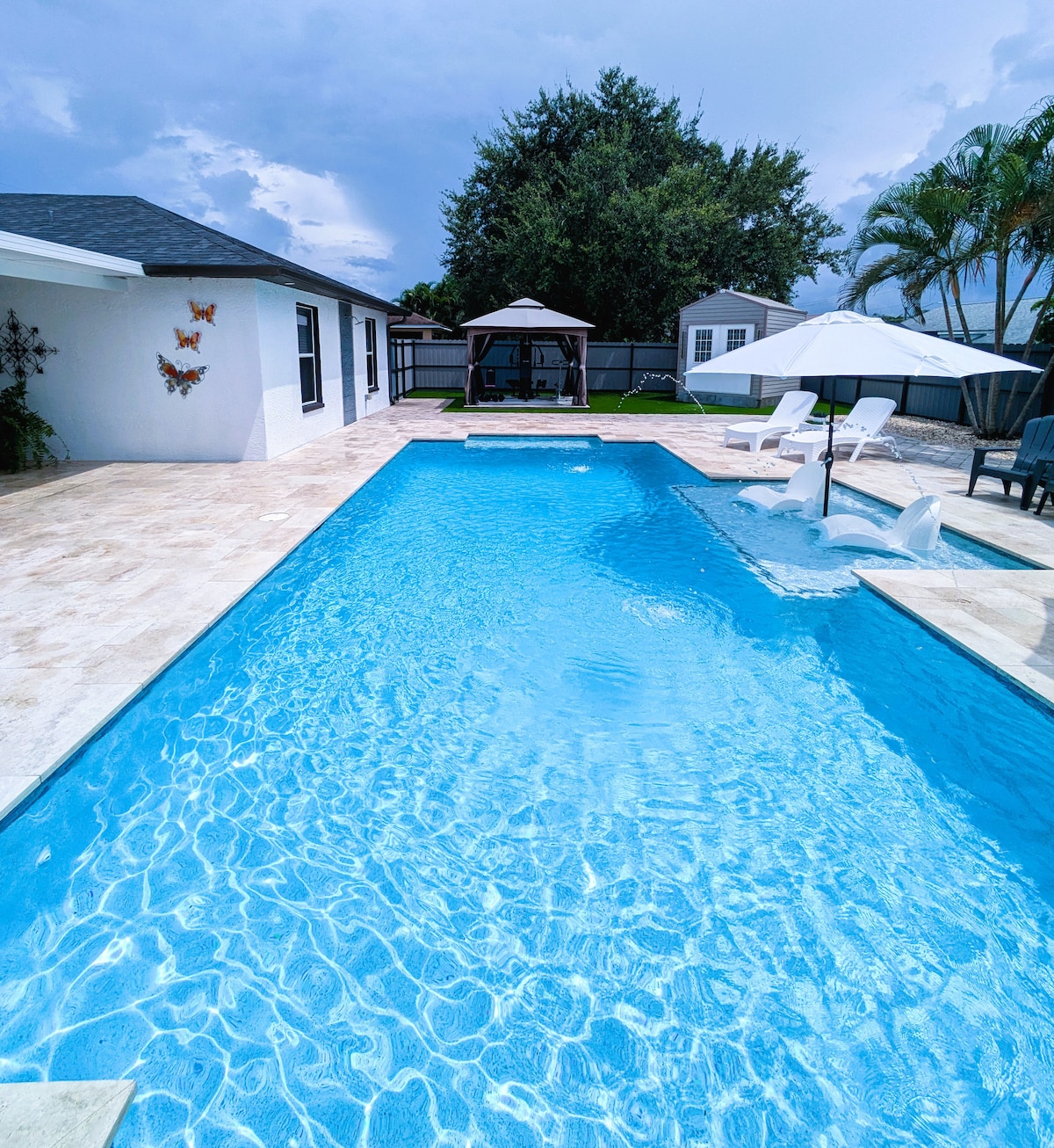 Your next retreat to Florida paradise should be Casa Blu with it's private pool and serene backyard. It's just minutes to area beaches, restaurants and parks. Let the stresses of daily life melt away as you float in the salt water pool, sipping margaritas, listening to Jimmy Buffett singing "It's Five O' Clock Somewhere" The single-floor layout, comfy bedrooms with private baths await. Fast WiFi, Smart TVs, and fully equipped kitchen. Everything's covered, from beach gear to a pack 'n play.