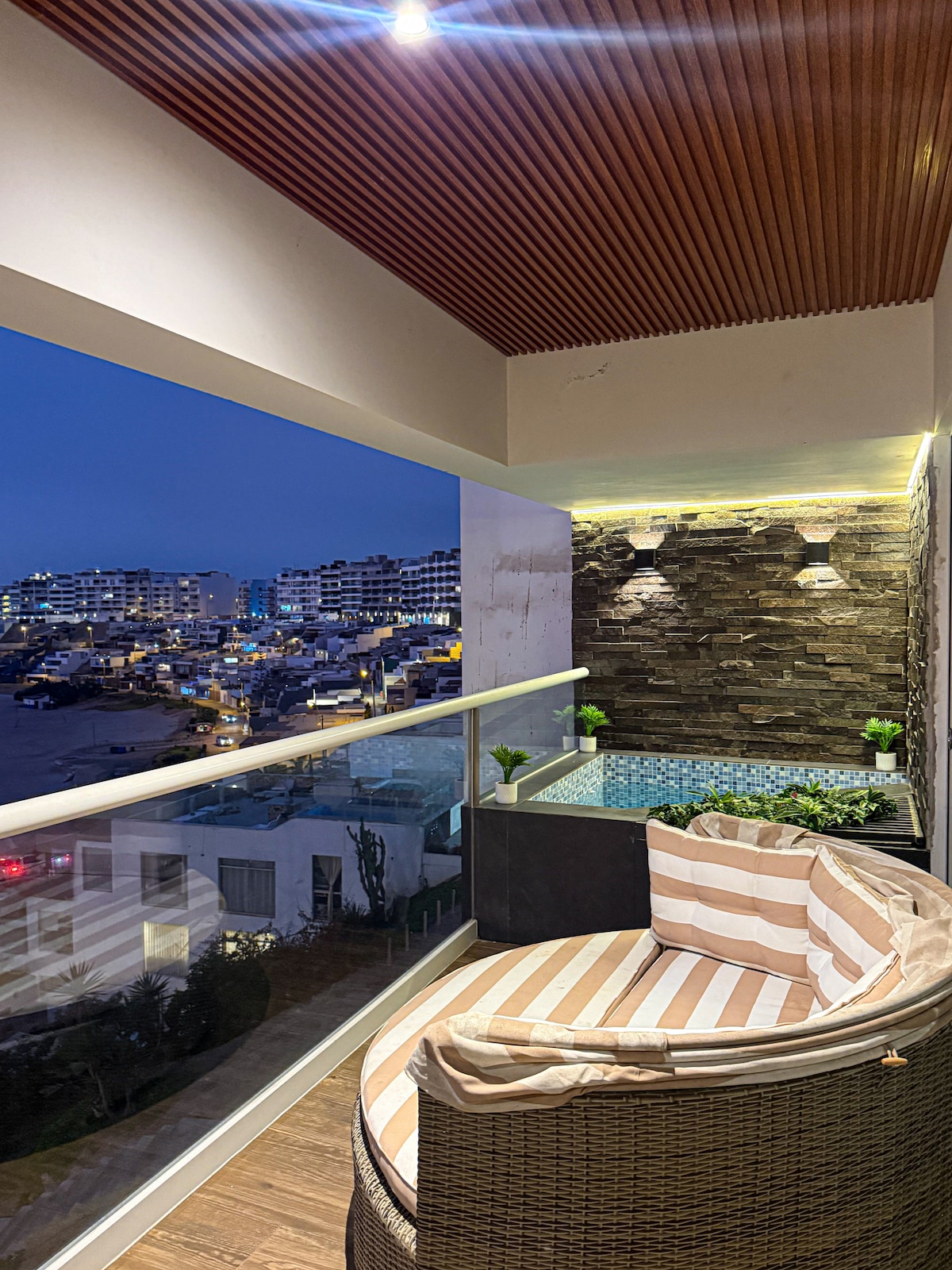 Monoambiente moderno y acogedor, ideal para parejas. Ubicado en urbanización segura con acceso a playa privada, piscina y vista directa al mar. Cuenta con cama queen, cocina equipada, terraza con muebles, Smart TV de 55" e internet fibra óptica. Perfecto para descansar, cocinar, trabajar o disfrutar atardeceres únicos.