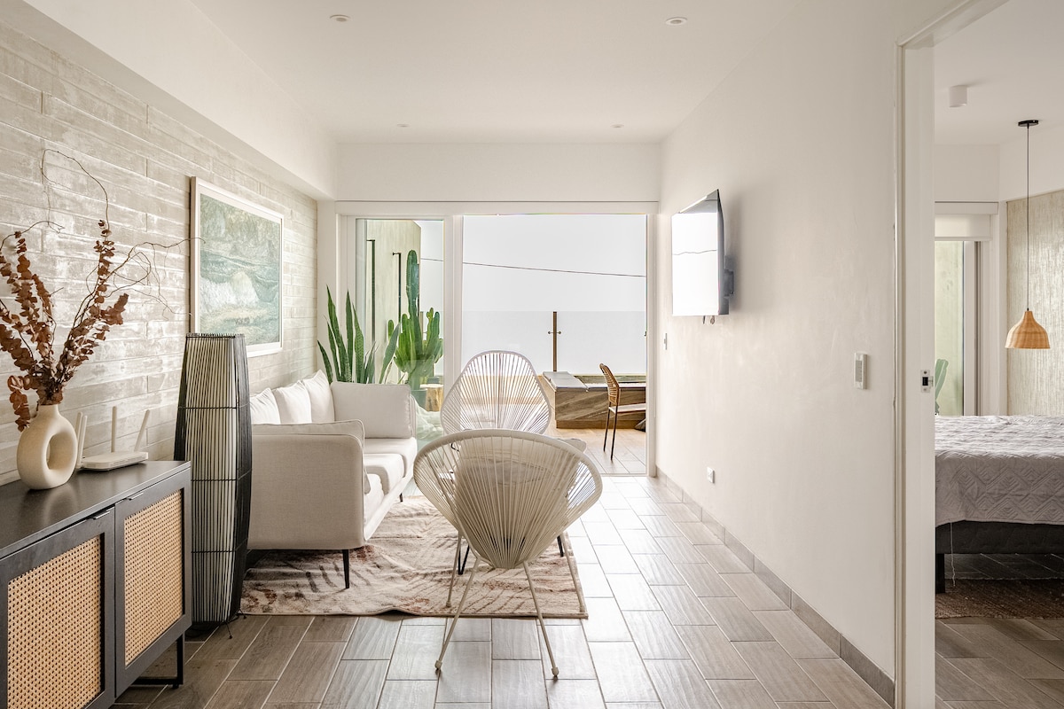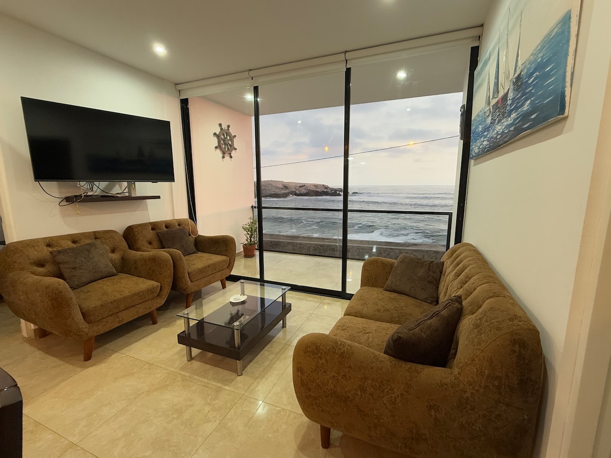 Entire Mini Apartment, SEA VIEW, furnished, with internet, cable TV, Netflix with the comfort and privacy of your house in front of Pulpos beach and 3 blocks from El Silencio. Built within a closed condominium with 24/7 surveillance designed for single couples, with family or friends who like to enjoy a quiet day at the beach, fishing or practicing bodyboarding or surfing, sleeping with the sound of the sea after a night of relaxation and grill in the small south or who have remote work.