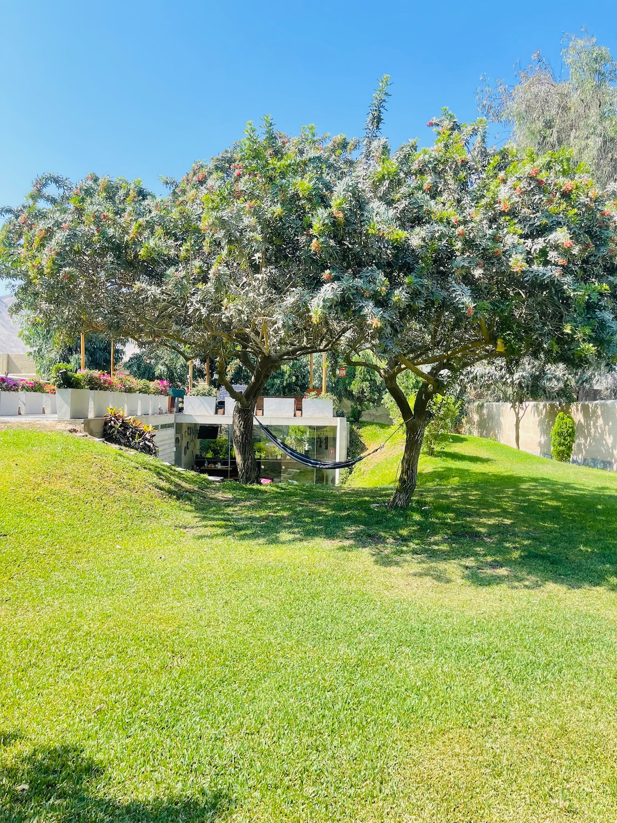 Preciosa casa con amplio jardín, palmeras y piscina hecha de rocas frente al mar con acceso directo a la playa, toda la casa mira al Mar. La zona cuenta con amplias vías para realizar caminatas , surfing, cycling y running. Cuenta con una piscina para los huéspedes y zona para realizar fogatas y parrilladas todo frente al Mar. Tiene el acceso más cercano a San Bartolo para diferentes servicios .