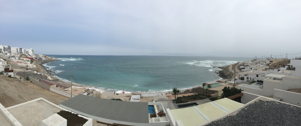 You will feel in a cruise just for you! All areas are for exclusive guest use (no sharing with others) 3 rooms, kitchen, dining room, leaving, terrace, wifi, cable, garden, pool, parking for 2 cars 40 meters to the beach Best spot for surfing Caballeros, Señoritas (direct view) or just chill and relax with the sea view Families and group of friends are welcome. The house have plenty of space for you to have fun, listen your music and enjoy one of the best views in Lima with total privacy