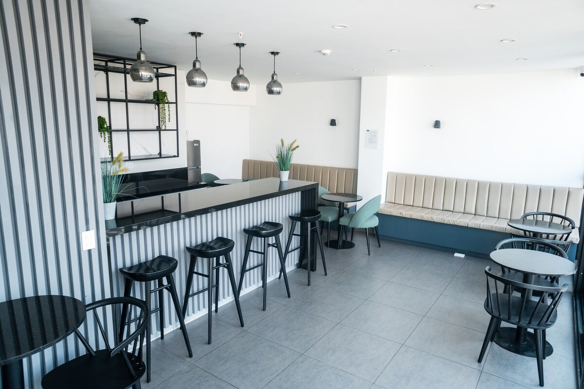 Dúplex amplio, luminoso y con estilo en el corazón de Miraflores. Zona social acogedora en el 4.º piso y dos cómodos dormitorios en el 5.º, perfectos para descansar con privacidad. Llegada autónoma, cocina equipada, internet fibra óptica 200 Mbps, ascensor, cochera techada gratuita y seguridad 24/7. Ideal para parejas o viajeros de negocios que buscan comodidad y excelente ubicación. A pasos de restaurantes, cafés, tiendas y a solo 8 min caminando de Larcomar, el malecón y las playas.
