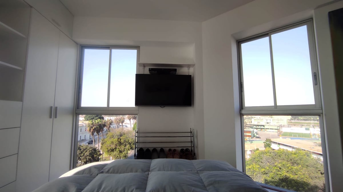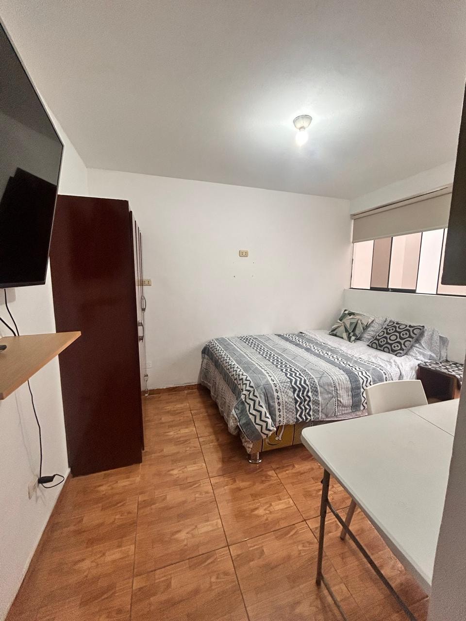 Immerse yourself in a charming and typical middle class neighborhood of Lima, surrounded by beautiful parks, just a few minutes from the tourist district of Miraflores. The apartment is located on the third floor of a house, it has totally independent access. A large main room with full bathroom, hot water, TV, large closet. A small secondary room with one individual bed. Cozy living room, with large terrace and full bathroom. A full kithcen, with oven, microwave and refrigerator.