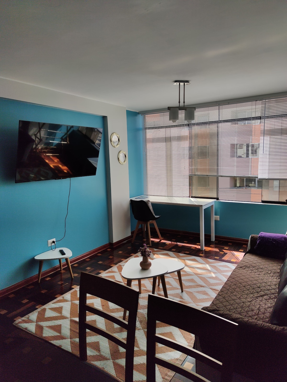 Fifth-floor apartment with a beautiful panoramic view of the sea and best location in Punta Hermosa. It has a total area of 130 m2: 115 m2 indoors and a 15 m2 terrace with a grill. There is a heated pool 1.4x1.9 mts. 4 bedrooms & 3 full bathrooms. It has a fully equipped gas kitchen with a microwave, electric oven, 450-liter refrigerator, and complete kitchenware and dining area for up to 10 people. 2 mobile desks, a spacious dining area, and high-speed WiFi available.