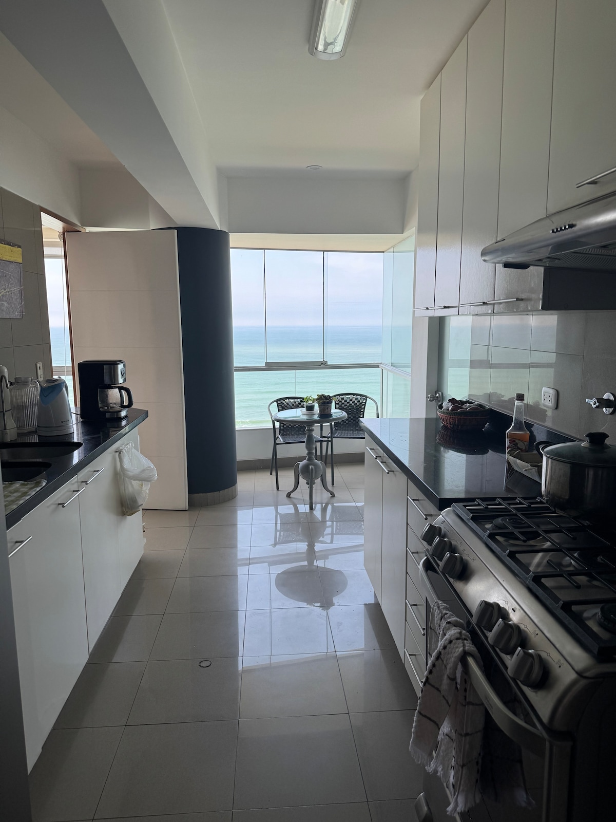Enjoy Lima from a unique duplex apartment with 2 bedrooms both equipped with queen size beds each one with its bathroom, surrounded by wonderful views of the boardwalk, lighthouse and Lima Bay. It will make your stay a perfect trip. Dine in the best restaurants in Peru, have a coffee with a spectacular view or walk around eating ice cream in a safe area. An experience you will love.