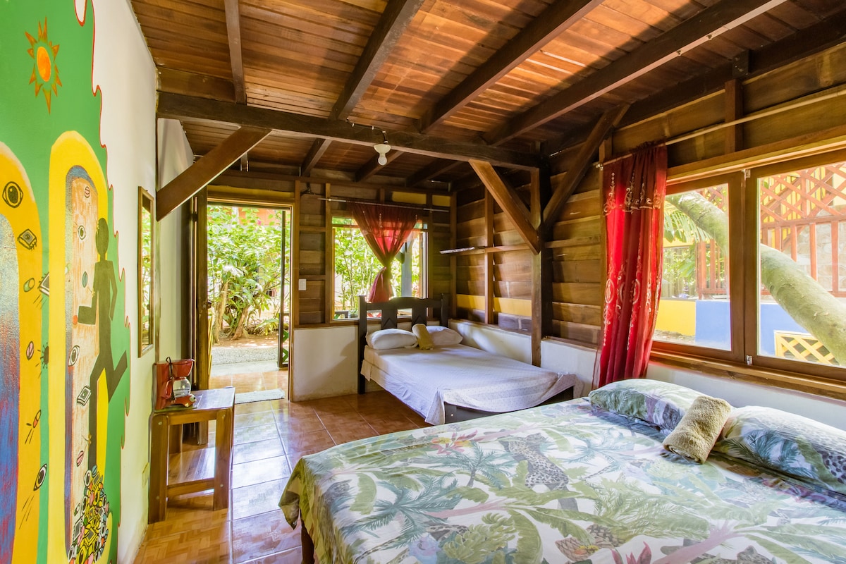 The best place to rest in Caribe Sur, perfect for a couple, rustic and romantic, located bythe Wildlife Refuge, is a cozy rustic lodge surrounded by nature. You might have contact with local flora and fauna. A great place to rest.We've had all kinds of wild animals, even a crocodile in the garden, so it's going to be a tropical adventure. The house is open, no glass nor windows, but shades and mosquito nets , but spiders and animal can enter , be aware.well equipped kitchen. , no laundry machine