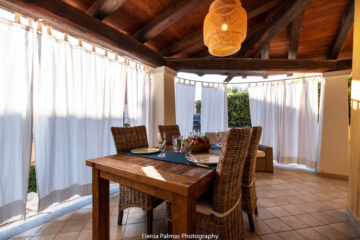 Casa Damia è un comodo bilocale situato nel centro di Villasimius, a pochi passi dalla Via del Mare, con i suoi minimarket, ristoranti e negozietti. Vi piacerà fruire dello spazioso ambiente esterno, volutamente arredato per creare una zona relax con lettini e zona pranzo/cena dove è possibile lavorare o leggere in silenzio all'ombra dell'ampia tenda e del bouganville. Il patio comunica anche con la camera matrimoniale. Il bagno è finestrato e la zona giorno ha un angolo cottura e un bel divano.