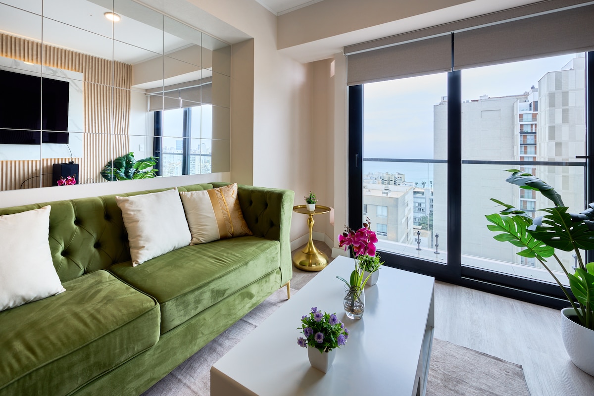 Elegant Art Loft in central Miraflores. King suite with private bath, walk-in closet, and balcony surrounded by greenery. Bright interiors merge design, comfort, and calm with a fully equipped gourmet kitchen. Enjoy Smart TVs, fast WiFi, washer/dryer, and 2 parking spaces. Steps from Kennedy Park, cafés, and the ocean — a serene, design-forward stay hosted with care.