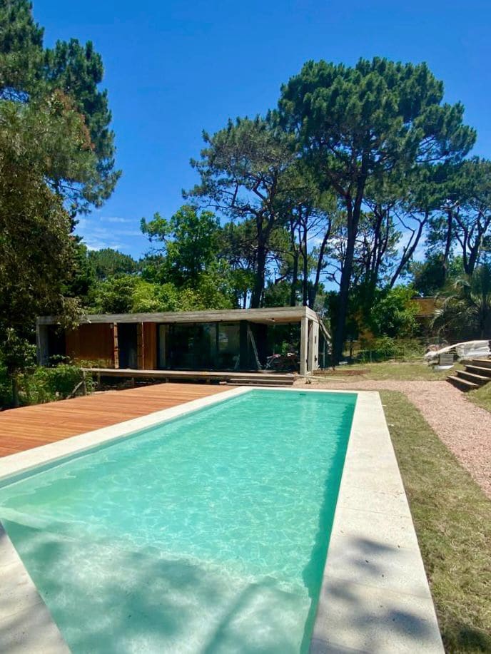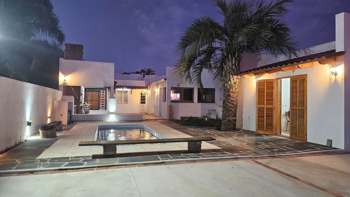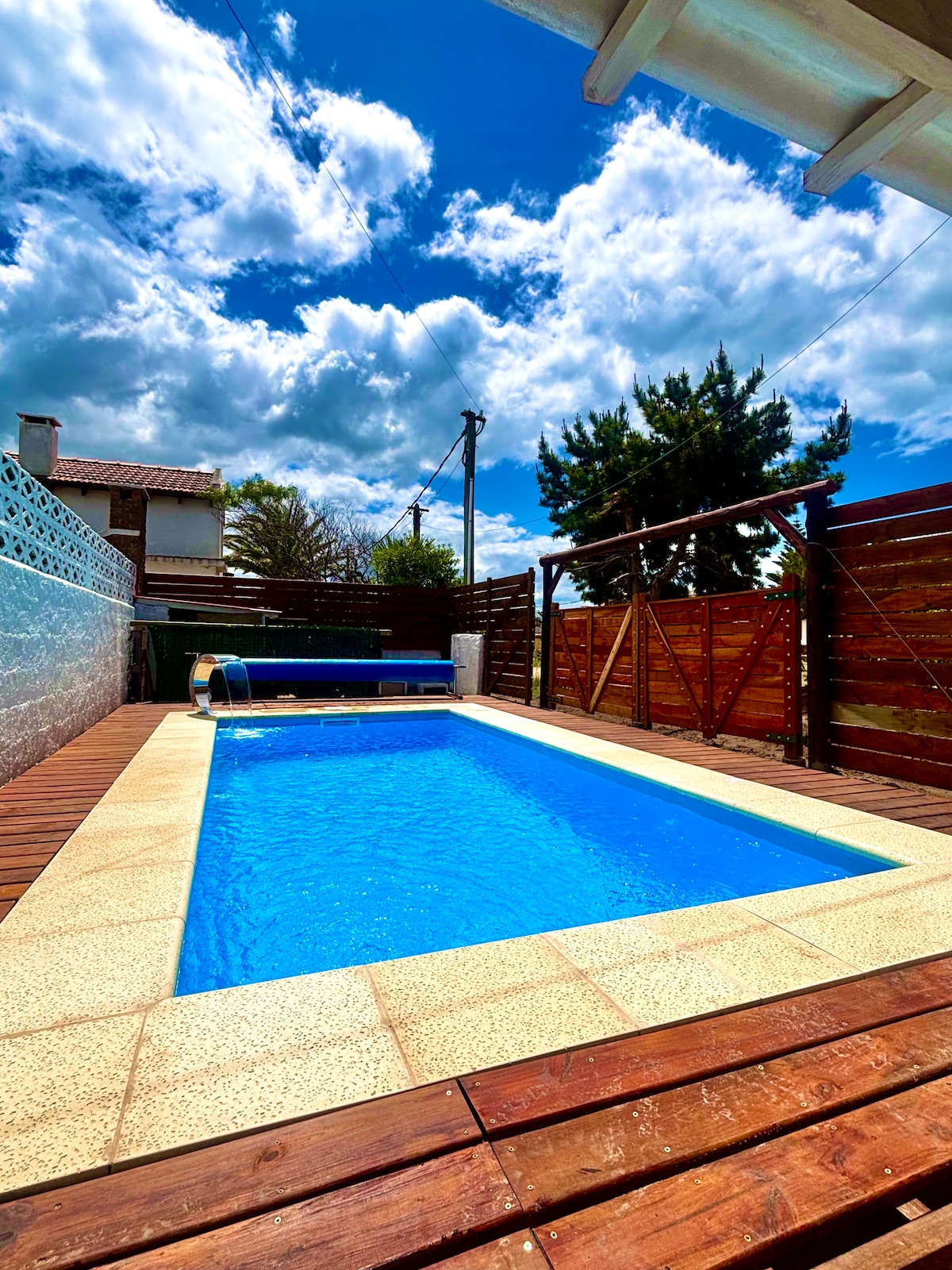 Moderna y hermosa casa. Son 2 casas en el mismo predio. Esta cuenta con 1 dormitorio con cama King size, amplio baño, cocina integrada con electrodomésticos de categoría, y living con sillón cama Tv smart 50” Piscina climatizada, (dic a mar) compartida entre los huéspedes de ambas casas Cerco perimetral Parrillero techado independiente Portón eléctrico, el vehículo queda dentro de la propiedad Ideal para descansar, zona tranquila A 6 cuadras de la costa