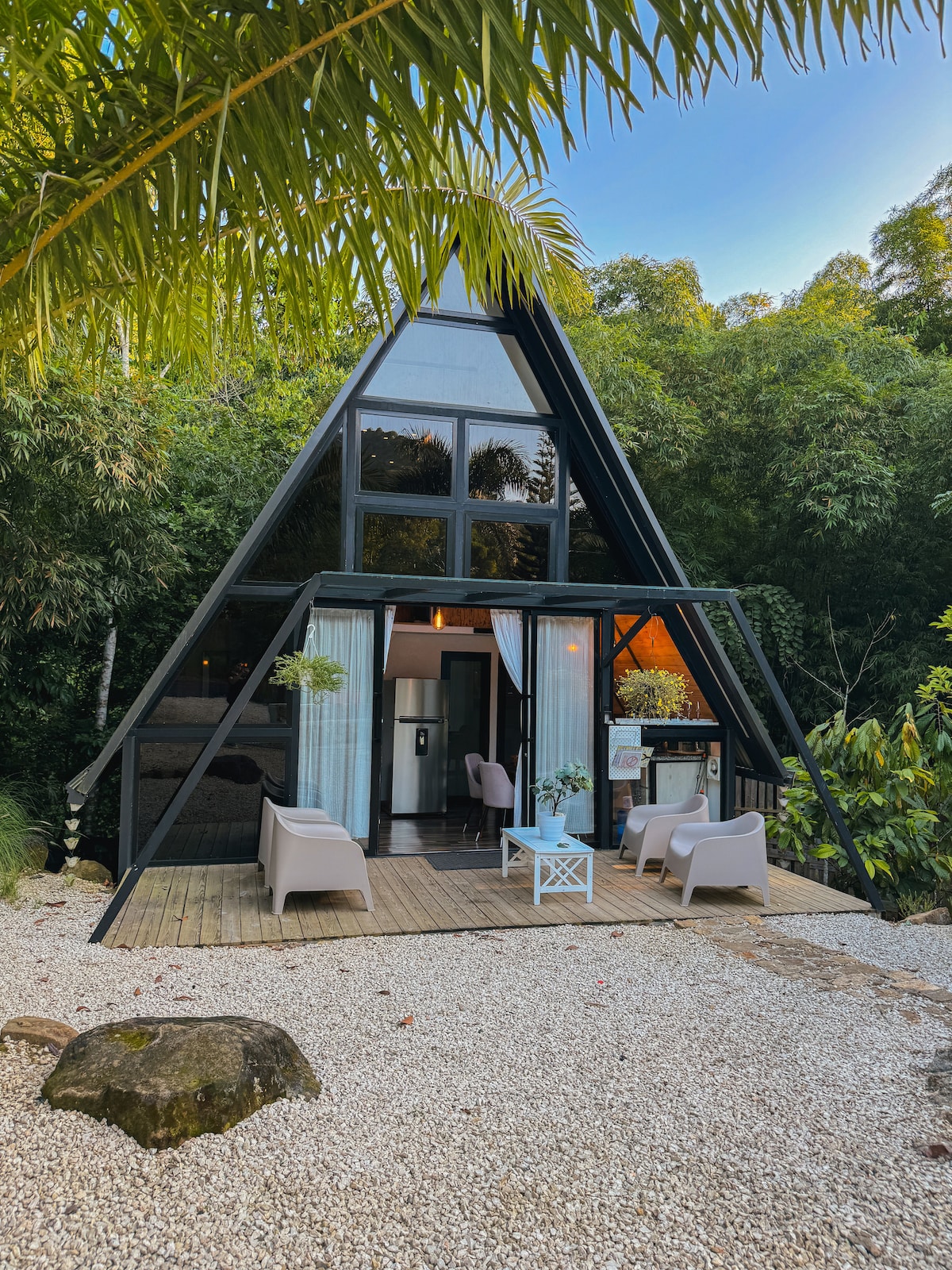 A noir cabin- Aframe at the mountains of Pedro Garcia is an architecturally designed one bedroom cabin located less than 55 minutes drive from santiago de los caballeros . Designed with a slow pace in mind, with epic escarpment and mountains views , the AFrame is a place to reset, reflect and connect with nature.