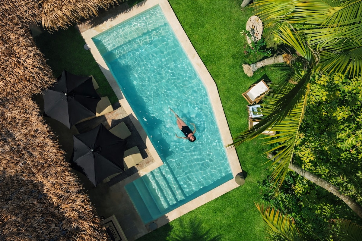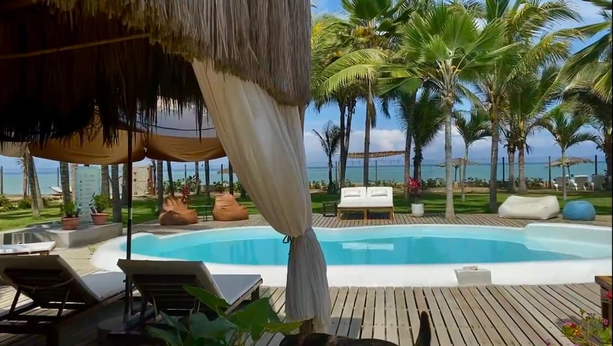 Casa Alma, a haven of natural luxury and comfort on the beach, located within Alma Loft. Enjoy 3 suites, 4 bathrooms, a spacious social room, open kitchen and an oasis-style pool. Our vegetarian architecture, with local and renewable materials, reduces ecological impact and creates welcoming spaces. With independent entrance and direct exit to the beach, our interior patios and large windows connect you with nature.