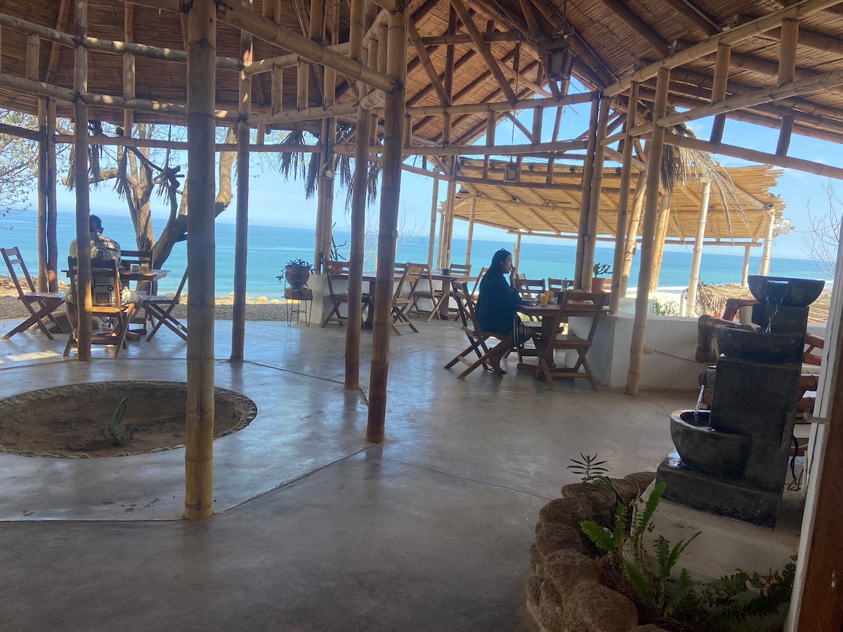 Acogedora cabañita con una linda vista al mar. Tiene una habitación con cama Queen, frigobar, baño con agua caliente y terraza donde les servimos el desayuno que está incluído dentro de la tarifa, además un pequeño jardín con hamaca y parrilla movible. Hay guardianía, limpieza diaria y wifi La cabaña es perfecta para desconectarse y disfrutar de la naturaleza!