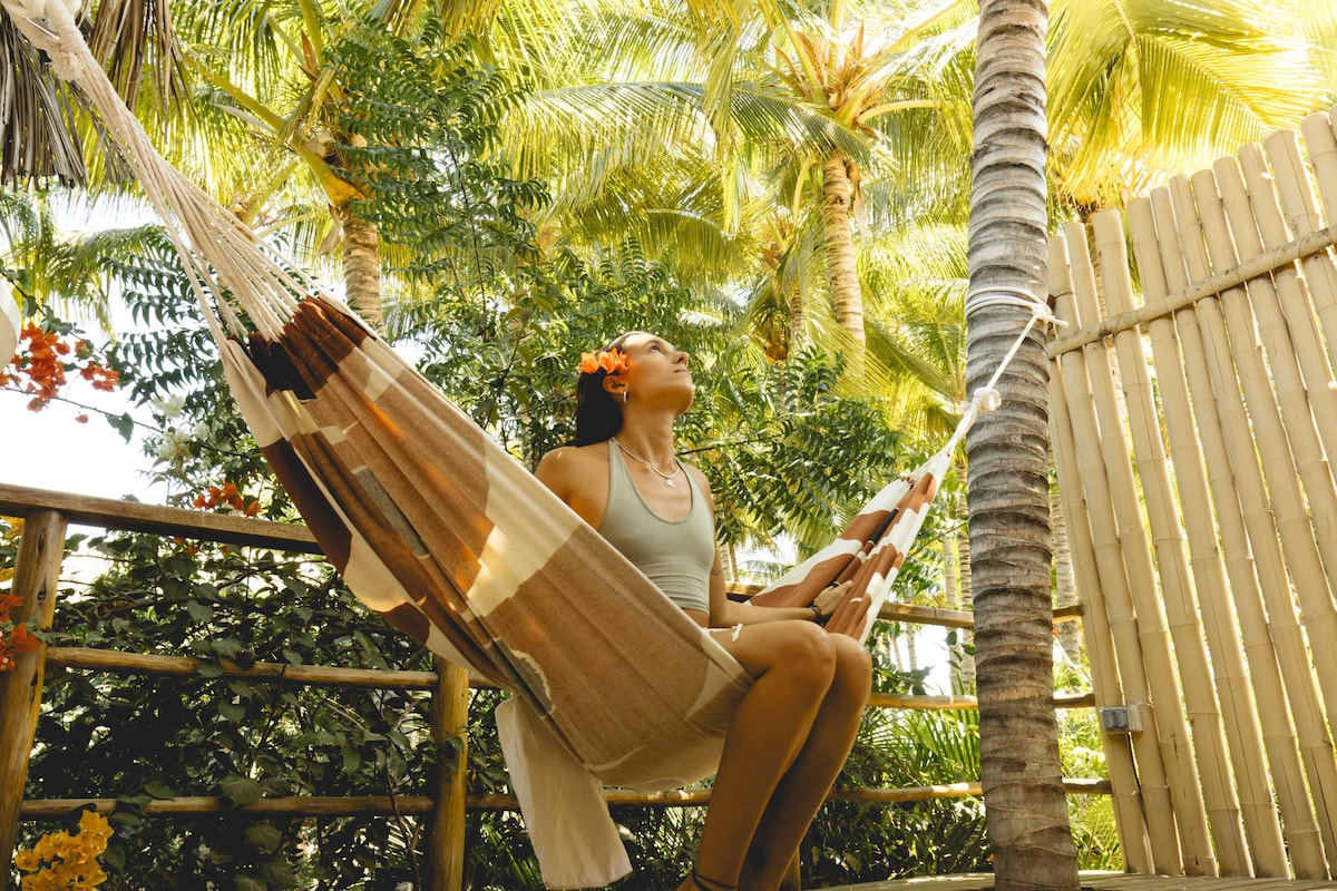 带独立露台和棕榈林景观的温馨生态巢穴