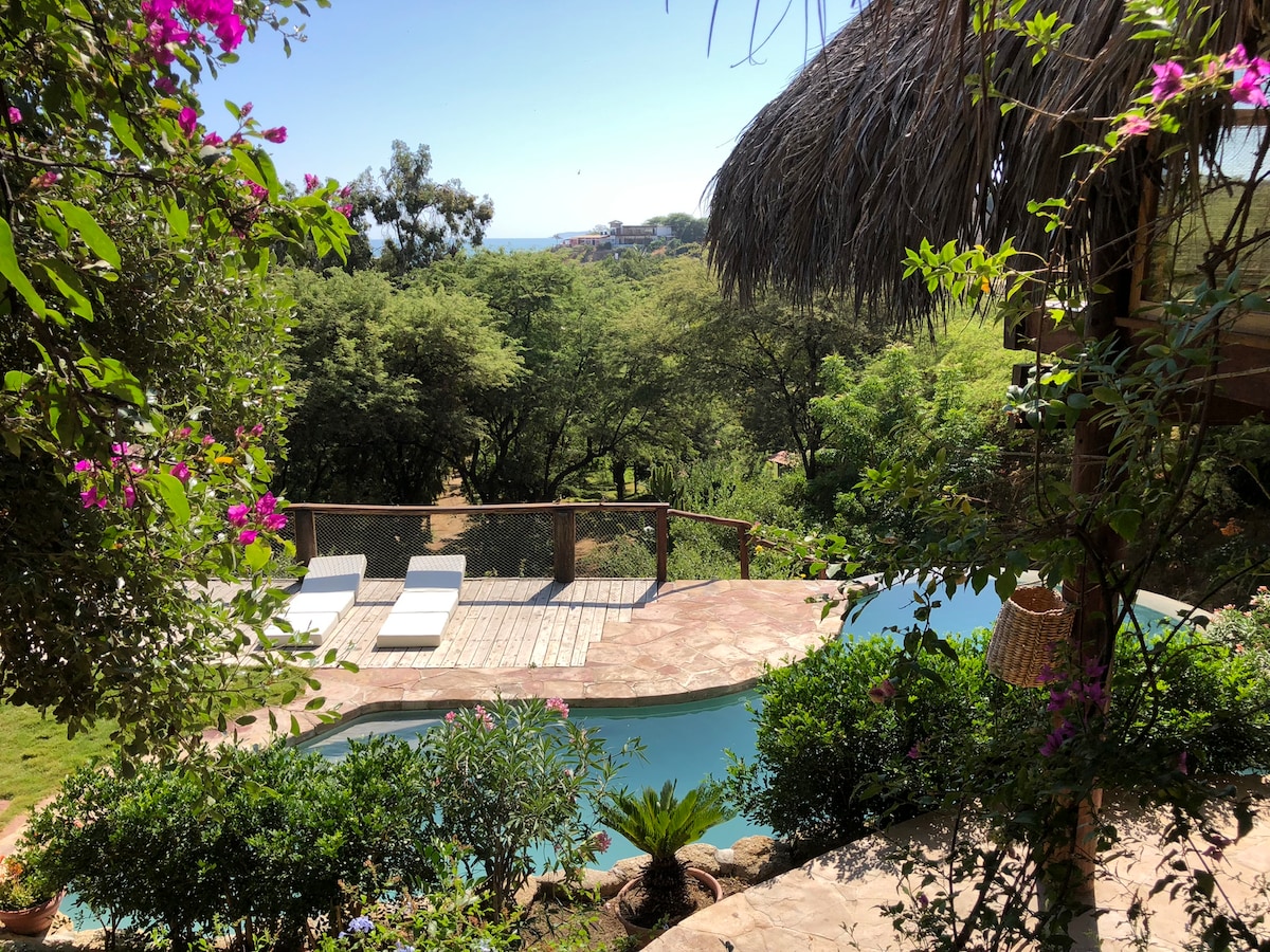 Desconéctate de la rutina, relájate y conecta con la naturaleza. La Cabaña cuenta con unas vistas increíbles, el mar azul del pacífico sus amaneceres y atardeceres espectaculares, la cabaña es muy cómoda,espaciosa y ventilada cuenta con piscina y es increíble para yoga. Estamos rodeados de un bosque de Palos Santos, muy cerca de la playa a unos 50 metros,bajando unas escaleras estarás en una de las mejores playas del norte del Perú. Te invitamos a vivir una experiencia inolvidable,te esperamos.