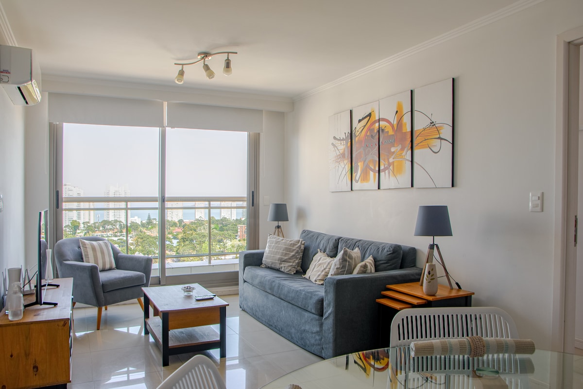 Moderno apartamento para 2 personas totalmente equipado con espectacular vista al mar y la península con 2 balcones, situado a cuadras del centro y de las playas mansa & brava. Incluye el uso de cochera propia, amenities de alta categoría como piscina interna y externa, sauna, gimnasio, business lounge y recepción atendida 24h. Ideal para relajarse y disfrutar de Punta del Este durante todo el año o combinar descanso y trabajo ya que dispone de una conexión rápida de internet (200 Mbps).