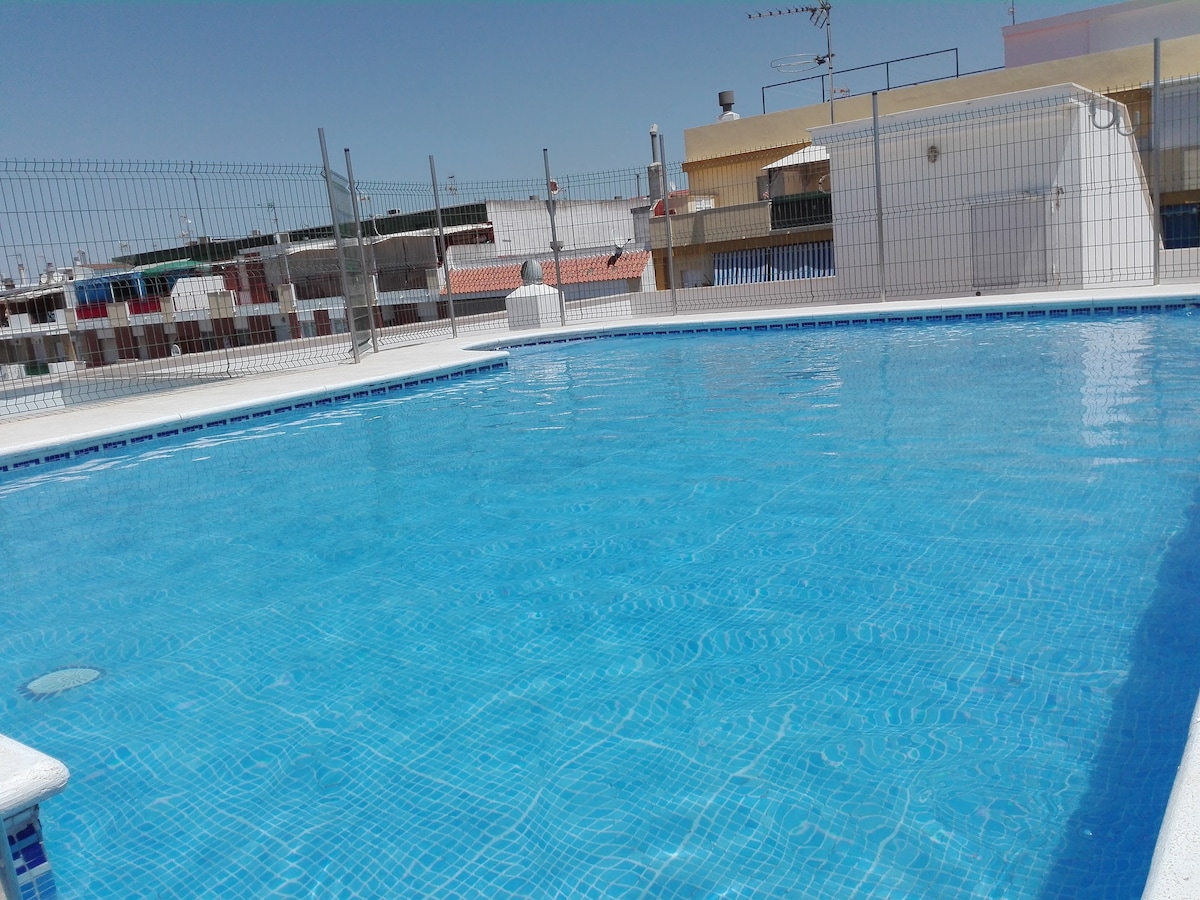 Loft-type apartment, very cozy and modern. POOL AVAILABLE ONLY JULY AND AUGUST- WIFI -NETFLIX- HBO MAX- AIR CONDITIONING- FULLY RENOVATED 2022. Ideal to enjoy a few days of vacation, and disconnect from day to day... With a magnificent swimming pool, to take a good dip. Available in season, July and August. Highlight the location, a few meters from the center, 200 meters from the beach and a few minutes walk from the 18-hole Golf Course.