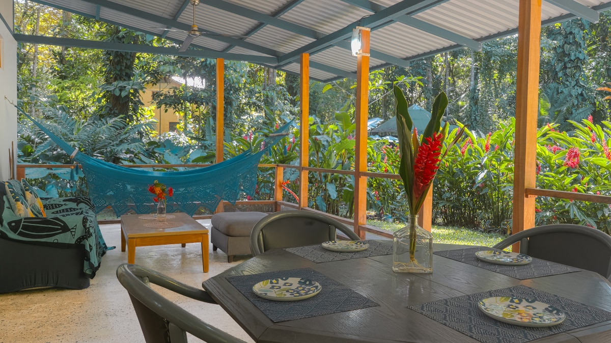 PICKLEBALL, POOL, HOT TUB, WILDLIFE!! On an acre of tropical gardens, ponds and wildlife habitat 300 steps to the beach. You will have wildlife throughout your stay. A habitat where people and animals can co-exist. Whether a romantic getaway, your family vacation, or a friend-group, the 3 bed, 3 bath will accommodate 2-9 persons in jungle-style luxury. Regardless of the size of your group, we rent to only one party at a time, assuring you a place to kick back and get that pura vida going!