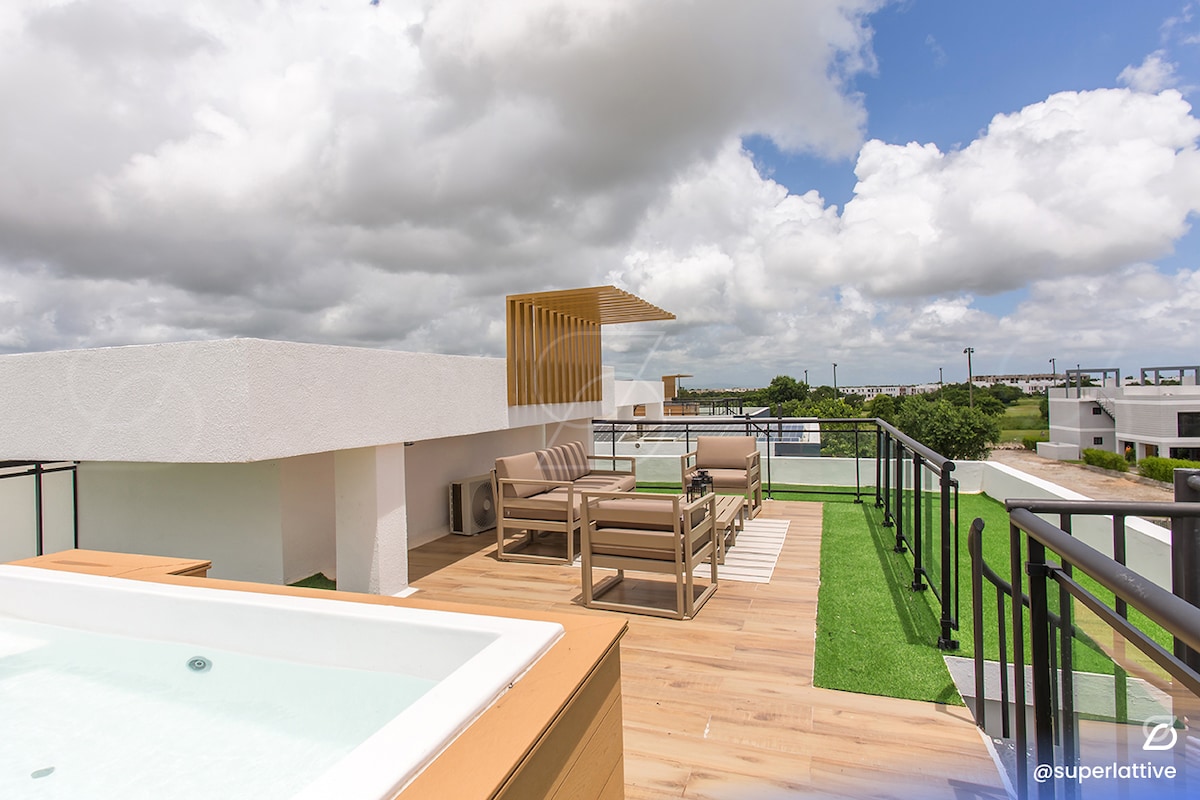 ✨ Modern penthouse in Cap Cana with a private jacuzzi and elevator. Located 5 minutes from the airport and close to Juanillo Beach and Downtown Punta Cana. Ideal for 5 guests, it features a spacious terrace, pool, fully equipped kitchen, fast WiFi, and private parking. Quiet and safe area with a nearby supermarket that offers delivery. Enjoy comfort, privacy, and easy access to restaurants and services. Book now for a unique Punta Cana experience! ✨