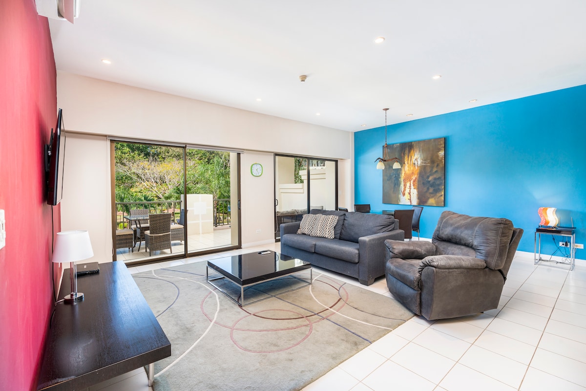 This modern and stylishly designed two-bedroom apartment centrally located in Jaco, offers all the amenities you'll need during a quick getaway - perfect for a group of friends, couples, or small families! Enjoy preparing your dinner in your bright adjoining kitchen, relaxing on the couch while watching Netflix in your open-concept living area, or exploring the vibrant and lively neighbourhood brimming with surf beaches and nightlife, with easy access to national parks. The space also features c
