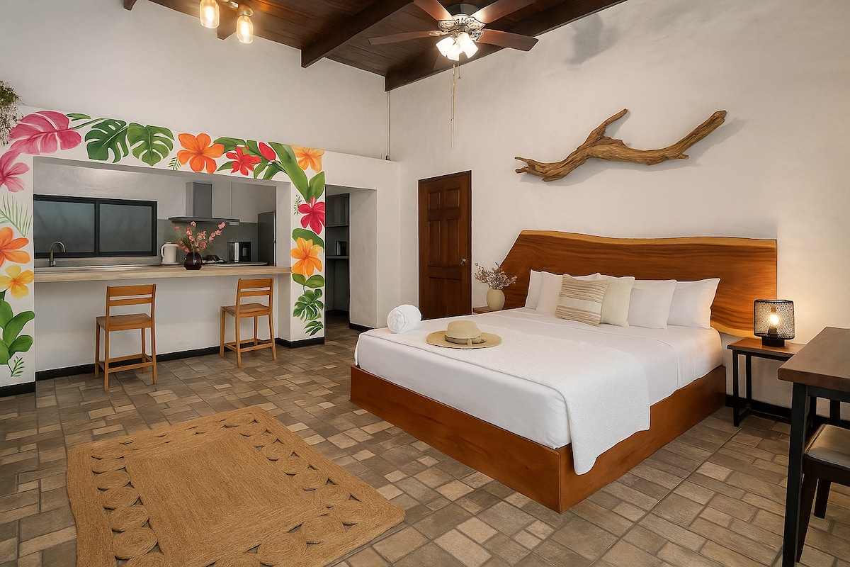 Tropical Holiday Escape-Pickleball included. Love Conveniently located at the entrance of Tamarindo, 3 minutes walking from the beach and many restaurants and shops. The 2 bedrooms apartment has a king size bedroom and a second bedroom with 2 Twins beds, 2 private bathrooms, a living-room and a full kitchen, a big terrace dining area, airconditionning in every room and a high speed internet connection. 15 Love has 2 public tennis courts and/or 6 pickleball courts and a small swimming pool.