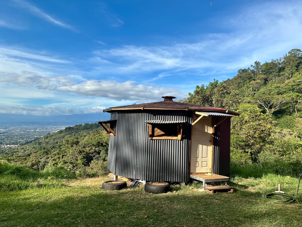 欢迎来到 香格里拉圆形木屋——一座坐落于哥斯达黎加圣安娜半山腰的独栋小屋。 木屋由主人亲手建造,采用圆形结构与原木材料,既独特又温暖,让你在自然中感受最纯粹的放松。 室内设计简洁自然,大面积玻璃让光线充足,早晨被鸟声和森林的味道唤醒。夜晚气温凉爽,在木屋外的露台就能看到漫天星空。 周围没有城市噪音,你可以散步、拍照、做瑜伽、发呆、写作,真正享受慢生活。 山下2公里就是城市中心,生活便利,应有尽有。 这里非常适合: • 想远离城市压力的人 • 情侣度假 • 创作者与摄影师 • 想体验“森林中独处”的旅人