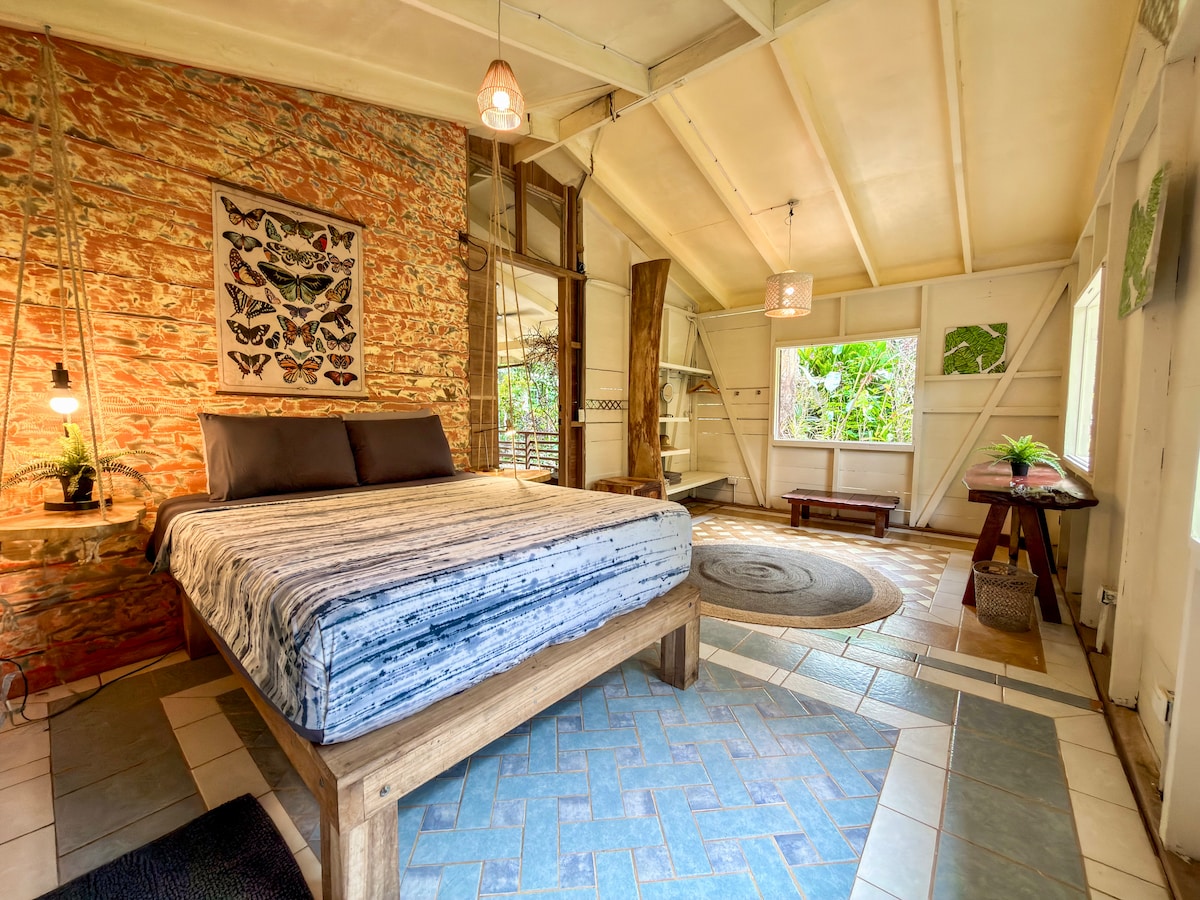 Enjoy the relaxed luxury in 1 of our 3 stand alone bungalows in the heart of Uvita. Featuring a King Bed, Fiber Optic, AC, Indoor/Outdoor Shower access & a well-appointed Kitchen. Take delight in spotting macaws, hummingbirds & dragonflies from your Private Patio or while taking a dip in your Private Salt Water Plunge Pool w/Sundeck & Loungers. We’re a 5 minute walk to the famous Whale’s Tail & are conveniently located near the best dining, surfing, yoga & adventures the SoZo has to offer.