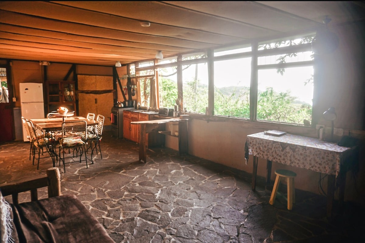 Unique luxury Earthship style cottage with natural pond designed and built by a local: recycled materials and custom woodwork. Green roof and airflow for efficient cooling. Includes: -Parking area -Outdoor cooking w/ table and chairs -2 sleeping quarters (1 queen bed, 1 full bed) -Sofa/individual bed -Brand new stovetop/oven and fridge -Ceiling fan and small room fans -Furnished -Mushroom Bar with 2 bar stools -Tree trunk slice coffee table -Desk -cool bathroom -fast wifi Starlink -hot water