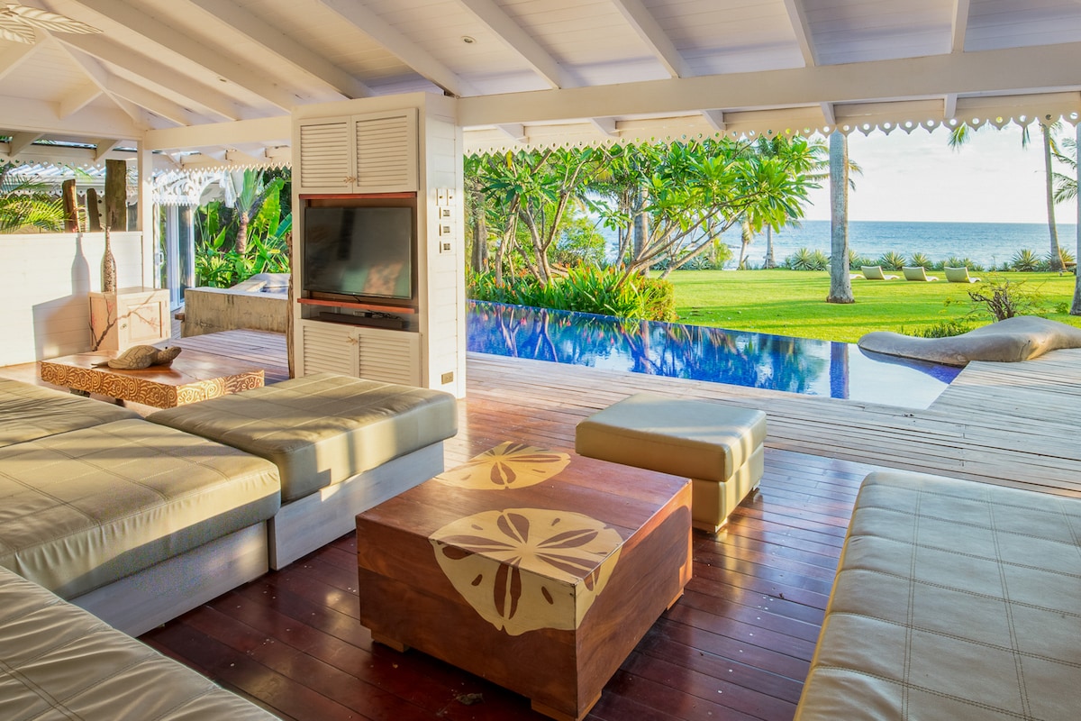 During your stay, be sure to explore the resort’s beach club, marina, restaurants and bars; you can also play a round on the golf course at extra cost. There are also rewards to staying ‘home’ at the private villa; the house opens to a covered loggia with a dining area from which you can step directly into the infinity pool and hot tub, or cross to a sunny terrace with its own lounge area. (There’s even a shallow section of the pool where you can park a lounge chair.) Flip on the villa’s sound system to set the mood, or share vacation photos with friends back at home via Wi-Fi.