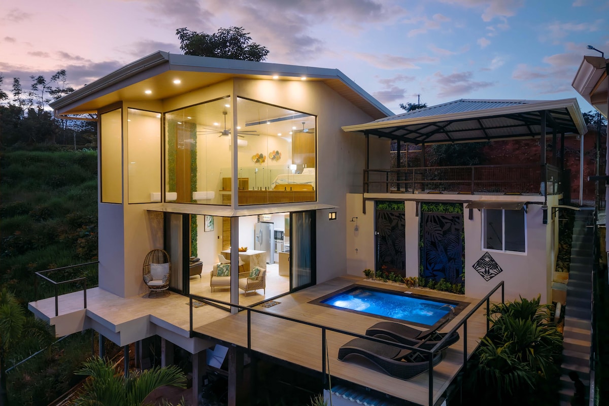 Coastal Vistas Casa | Santa Teresa Coast Views is a private, high-end luxury suite in Mal País with panoramic Santa Teresa coastline and jungle valley views. Designed for romance or focused solo stays, it features a plunge pool, gourmet kitchen, and seamless indoor-outdoor living in a secure, tranquil setting. Wake to birds and wildlife, then reach beaches, surf, and dining in minutes—ideal for couples or a solo digital nomad seeking privacy and inspiration.