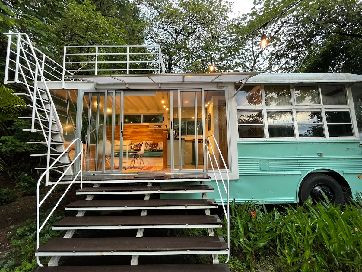 Find peace in deep nature in our boutique, upcycled buses made by Costa Ricans, for the world. Sandwiched between two major nature reserves yet within a gated community, we built this space for those who want to remain close to town (10min drive) and the beach (8min drive), but feel immersed in the jungle...with all modern comforts. We promise it will be difficult to leave. PS: it is highly recommended to have your own transport when staying here. 4x4 is ideal.