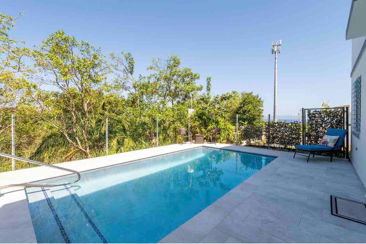 Enjoy the NEW pool at Casa Kelly. Nestled in the safe and quiet Barrio Puntas, Casa Kelly is a unique retreat to unwind. Unwind by the pool on our yoga mats. Surrounded by lush tropical forests, this paradise is just minutes away from beaches, shops, and restaurants. Each of the 3 master suites features A/C and a private bathroom, comfortably accommodating 6 guests. An additional loft is available for extra guests in the group. Security cameras are included for your peace of mind.