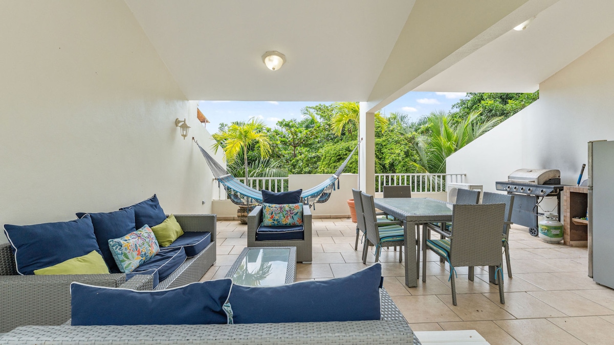 Catch some rays from the comfort of a sun lounger before jumping into the refreshing outdoor pool set atop a scenic hill. Inside, sandstone tile accents and blue color pops mingle with nautical decor in this tranquil home with an open layout. Villa Diane is set in a very quite neighborhood. It has amazing views of the ocean while relaxing in the pool or on your private patio. Just minutes walking down the road are many different restaurants and beach bars.