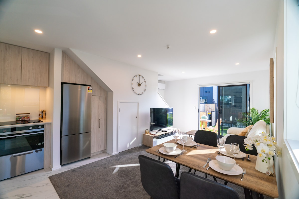 Step into this luxurious clean 1BRM nestled in Christchurch Central. Three minutes walk to supermarket, chemist, cafe and restaurants. Lounge the day away on the sunny balcony or walk around the city. Amazing five star reviews on cleanliness , location and overall stay. Exclusive Gated Free Car Park so no stress trying to find a park or worry about safety. Quiet Street Very clean Warm/cooling air conditioning Fully Equipped Kitchen Ensuite - underfloor heating Smart TV High-speed Wifi