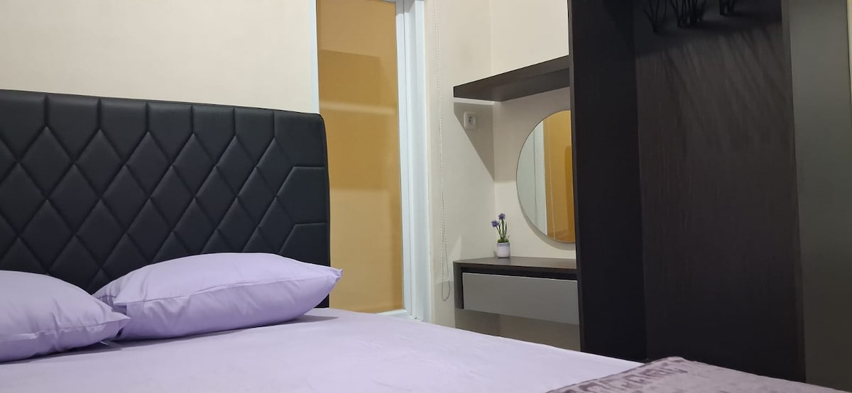 Modern Luxury House with 3 Bedroom [ each with bathroom ] 2 bedroom with double bed ( with modern interior style ) 1 bedroom with 3 big bunk bed style, 120 cm each ( kids will like it) Spacious luxury Living room, up to 10 person, complete with high speed wifi ( up to 85 MBps), Smart Tv, and blueetooth speaker. Modern and complete Kitchen with Big Side by side refrigerator, Microwave, stove, sink, water dispenser, and dinner table cozy & calm environment have bicycle and otoped for kids.