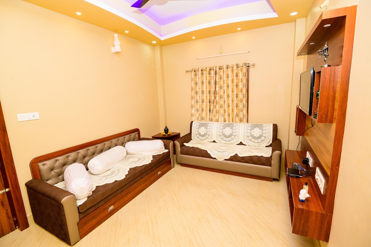 Experience comfort, elegance and the soothing vibes of the Bay of Bengal at this elite resort room located inside a beautiful 4-star resort in Puri, just 1 minute walking distance from the sea beach. Perfect for couples, families and peaceful getaways, this thoughtfully designed room offers a bedroom, a cozy living area and a private kitchenette, ensuring hotel-style luxury with the warmth of a home.