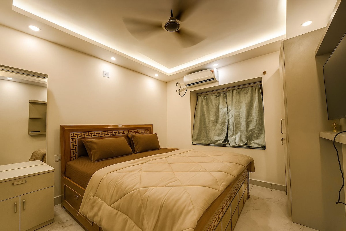 Stylish 1BHK apartment in puri,on Station Road. Just 300mt from Railway station and close to bus stop. It features aesthetic interiors, daily housekeeping. Ideal for family or couples looking for comfort and convenience. Enjoy a peacefull stay with tuktuk or auto access to puri’s beaches,cafes, and nightlife. Your perfect getaway starts here!