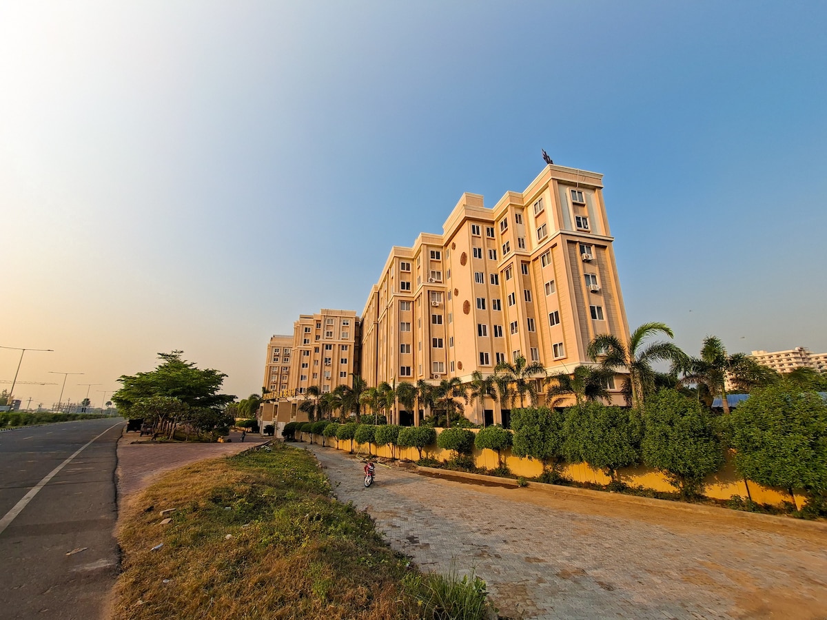 Get comfortable and enjoy the property is an all-suite room aparthotel with spacious bedrooms, attached bathrooms, and an extra living room. It is located on the main highway, NH316, with parking facilities. approx. 600 meters from the sea beach. Avoid the hustle and bustle of the city to enjoy your holiday more. Ideally perfect for a family looking for accommodation at the value of money. it's the right place for long-stayers who want to explore Puri Dham (Jagannath Dham)