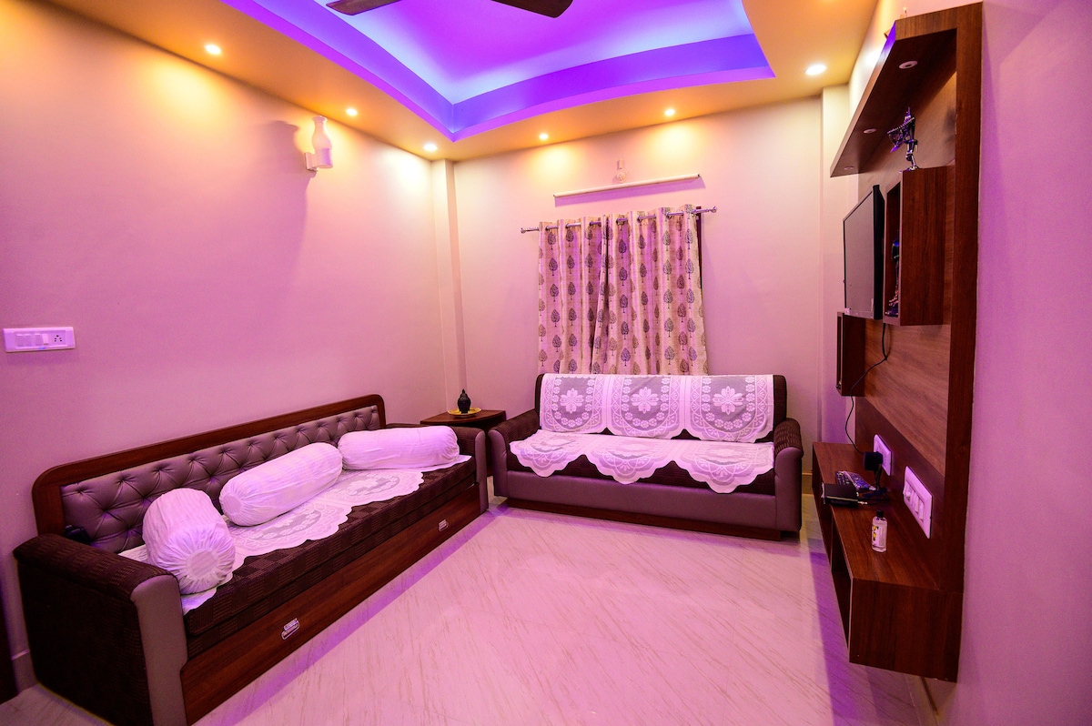 800 Sq. ft (2 x AC Rooms) Independent House in the Ground floor A fully furnished 1-BHK property strategically poised between the Sea Beach and Puri Jagannath Temple. Amidst a serene environment, this place is crafted with minimalistic yet attractive home decor & offers all modern amenities & facilities for a nice & comfortable stay. * 1.5 kms to both Beach & Temple * Caretaker available & Travel Assistance * Temple Assistance & Mahaprasad upon request. MOST WELCOME - A HOME away from HOME!